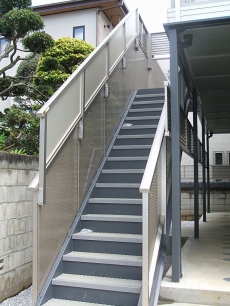 「SAデザイン」では日新製鋼のZAM材(高耐食溶融めっき鋼板)を外部階段の主要部材として採用しています。