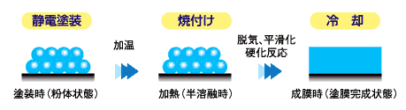 その後焼付けを行い、塗料を溶融・硬化させます。