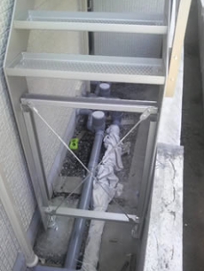 ユニット工法 ユニット工法により狭小地にも取り付け可能な鉄骨階段で工期短縮